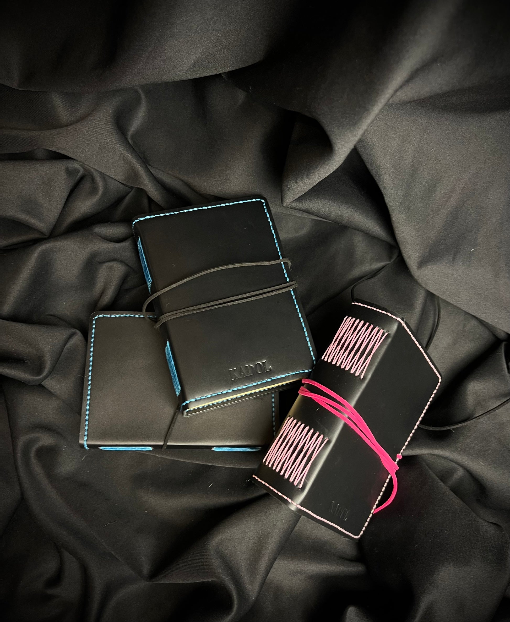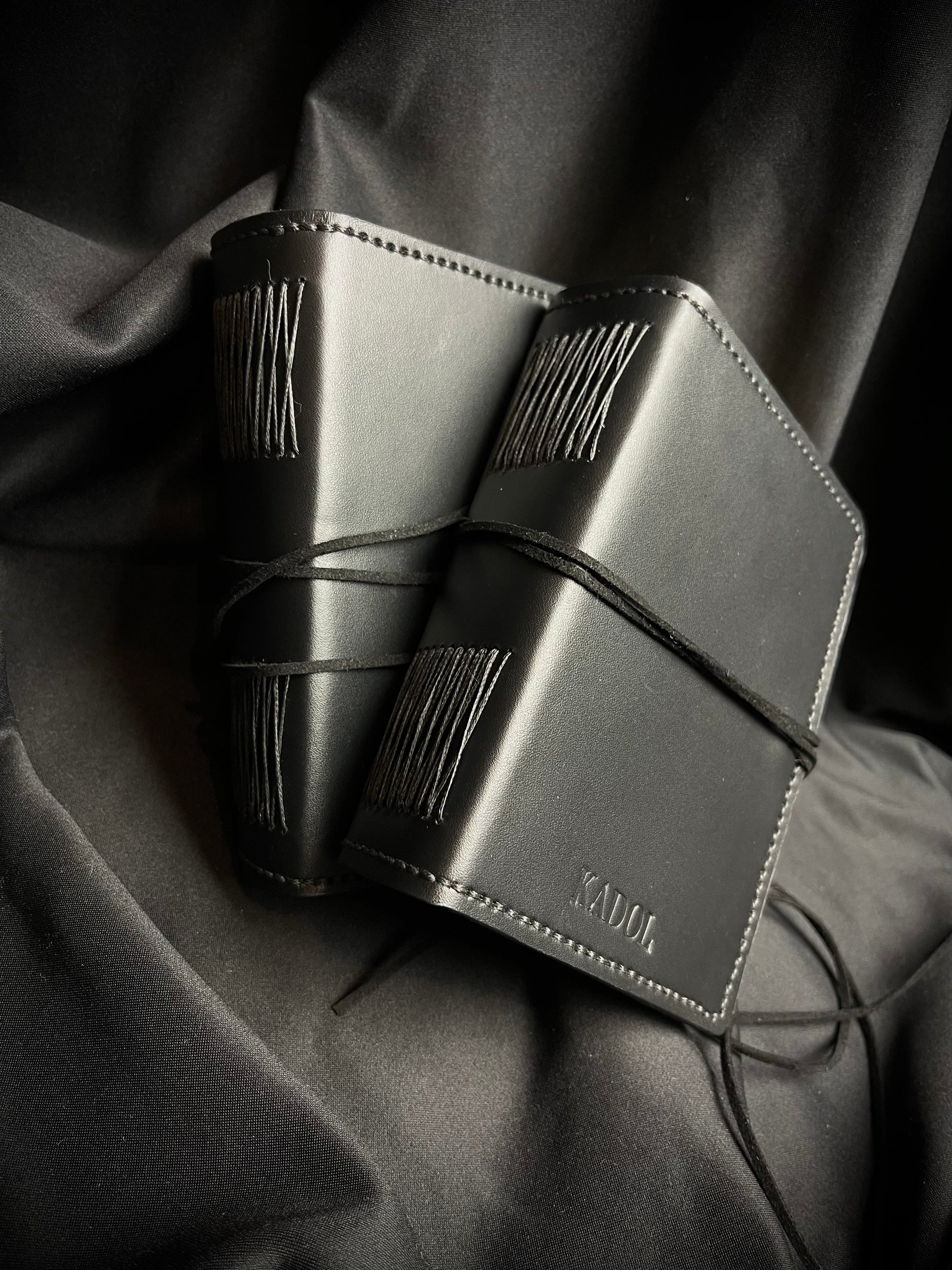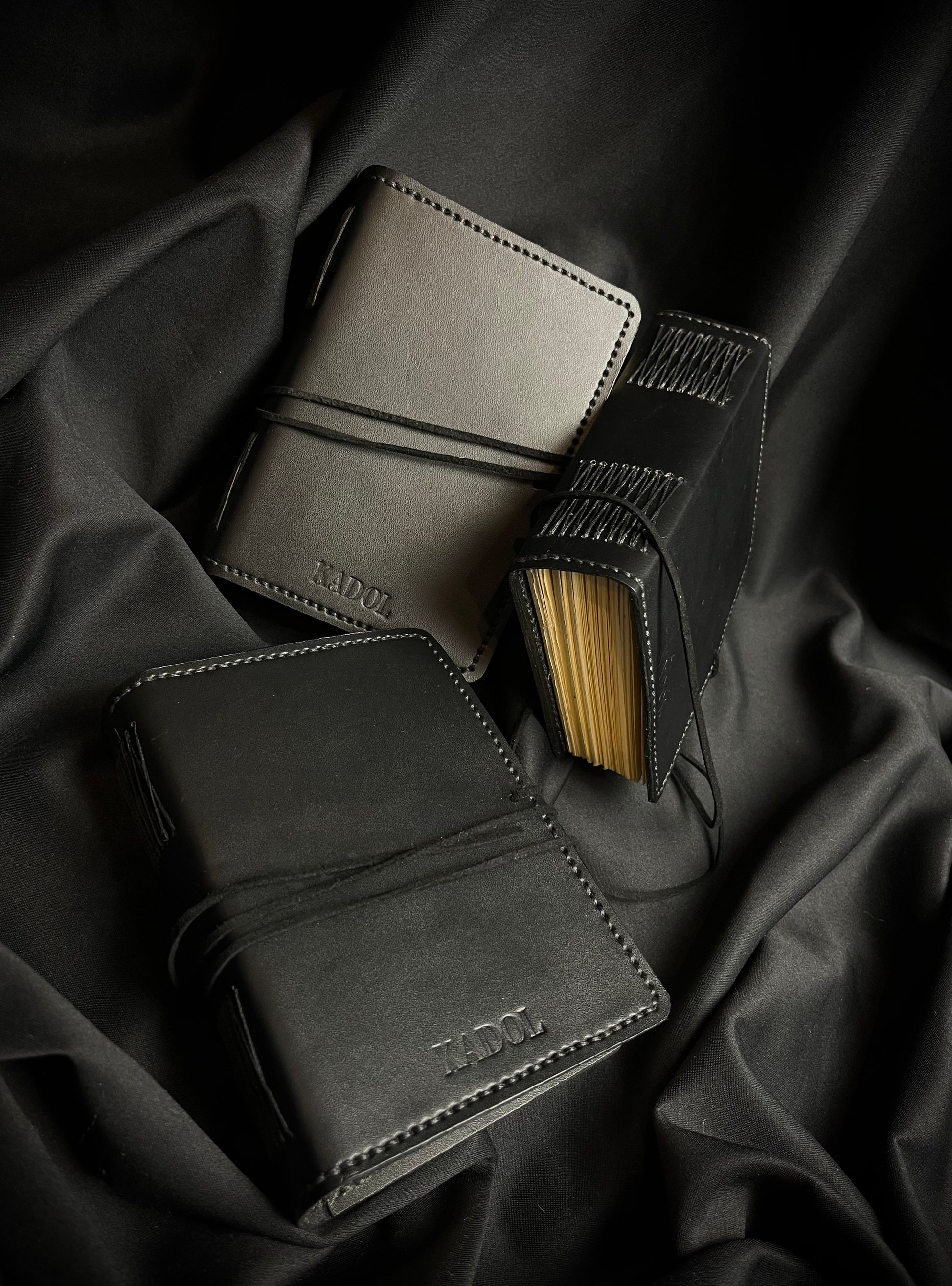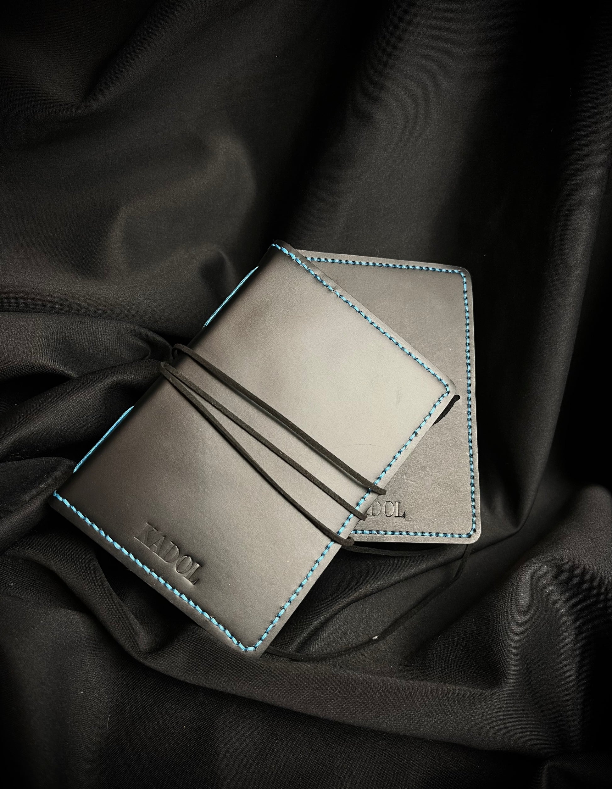 Juoda odinė užrašinė - su pasirinkta spalva. Tvirta oda, stilinga ir praktiška – puslapiai saugiai laikosi, o spalvotas akcentas suteikia unikalumo.