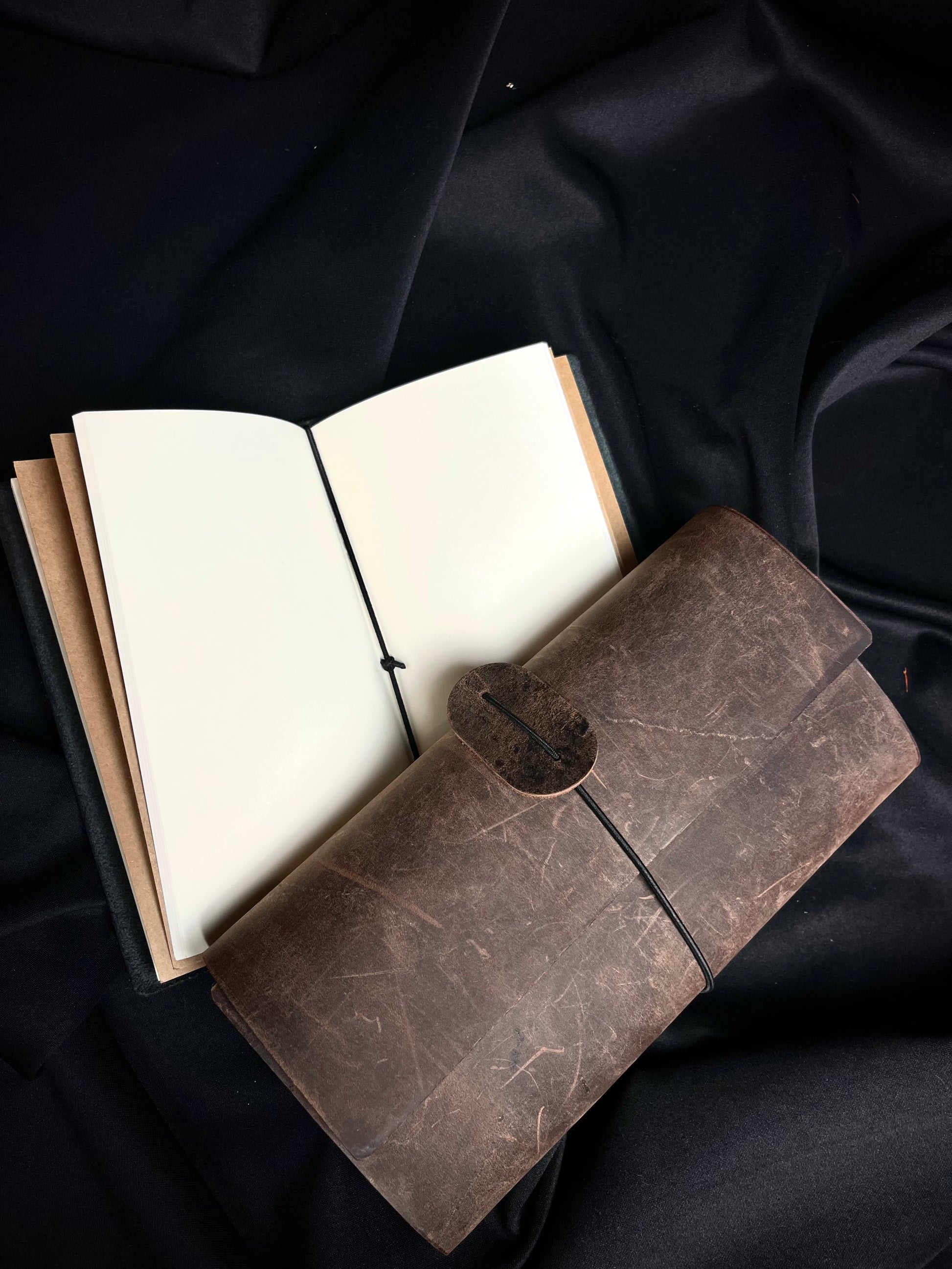 Klasikinė ruda odinė užrašinė – rankų darbo, aptraukta tikra oda.