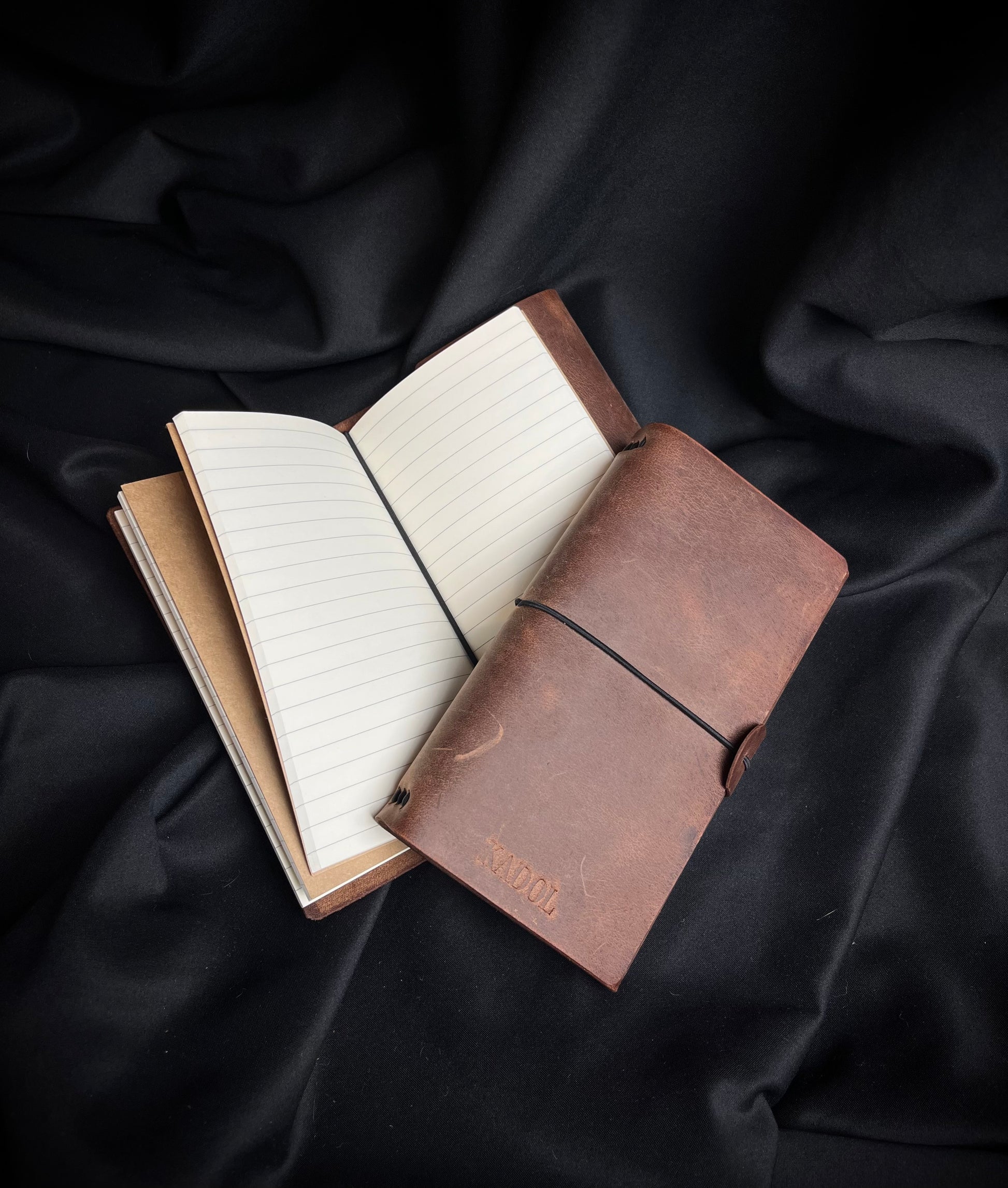 Mažos odinės užrašinės – juodos arba rudos spalvos. Tvirta oda, kompaktiškas dydis, patogios nešiotis ir užrašyti svarbiausias mintis. Lapai saugiai laikosi, o elegantiška išvaizda tinka kasdieniam naudojimui.