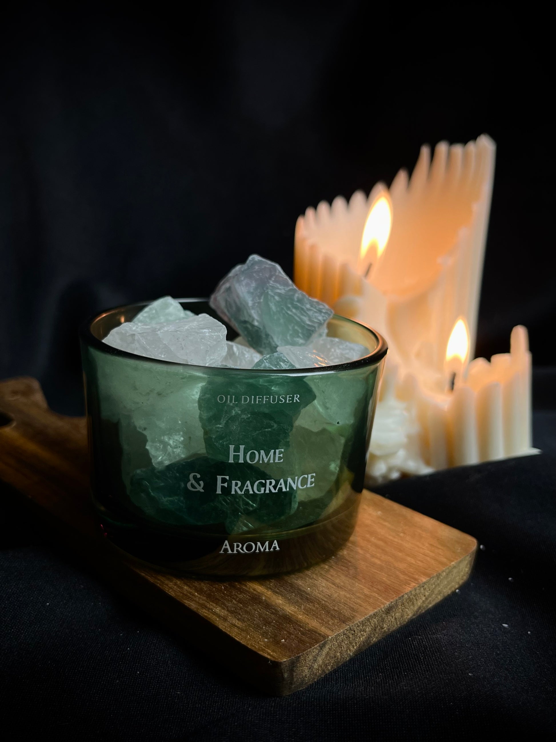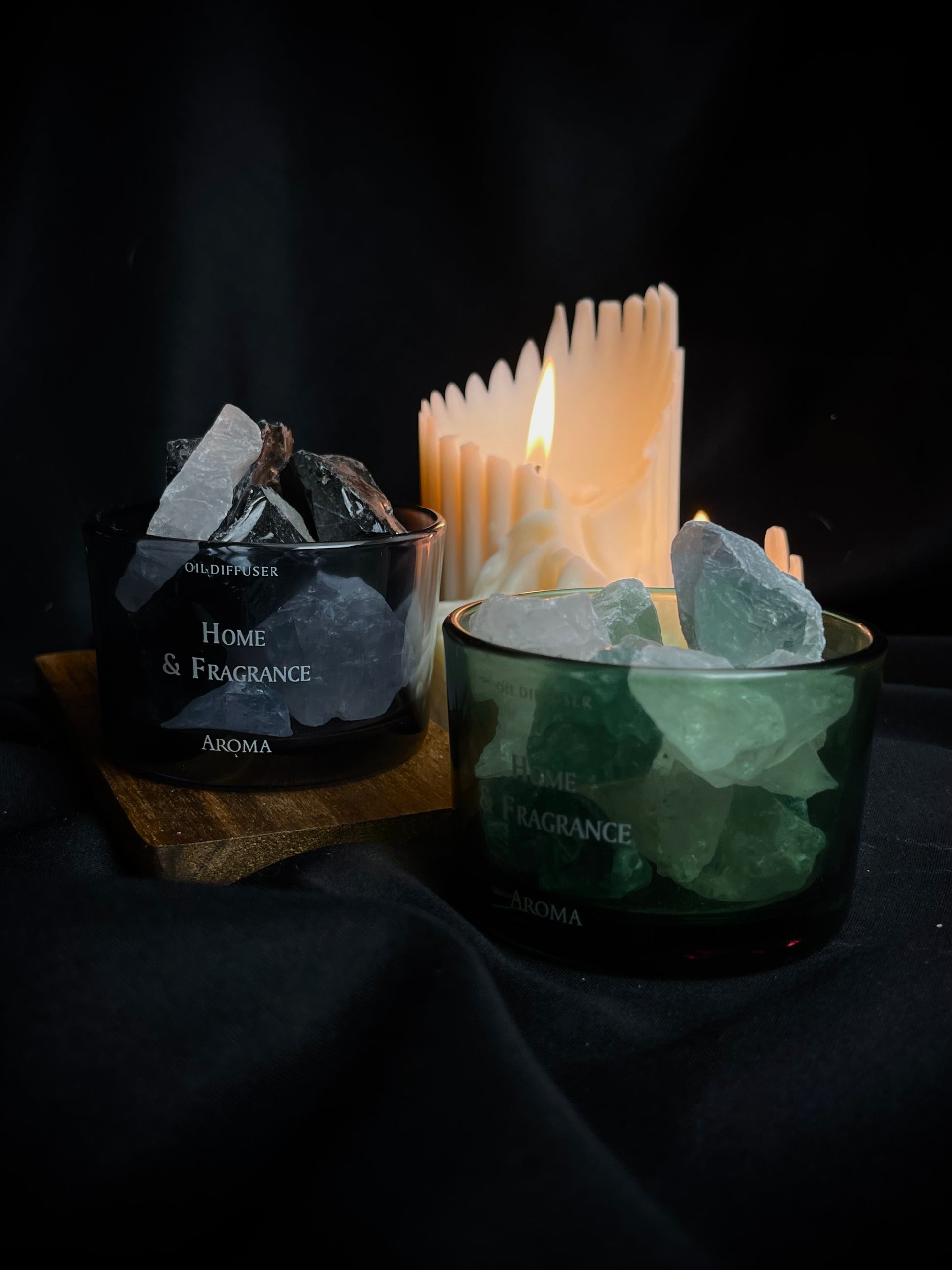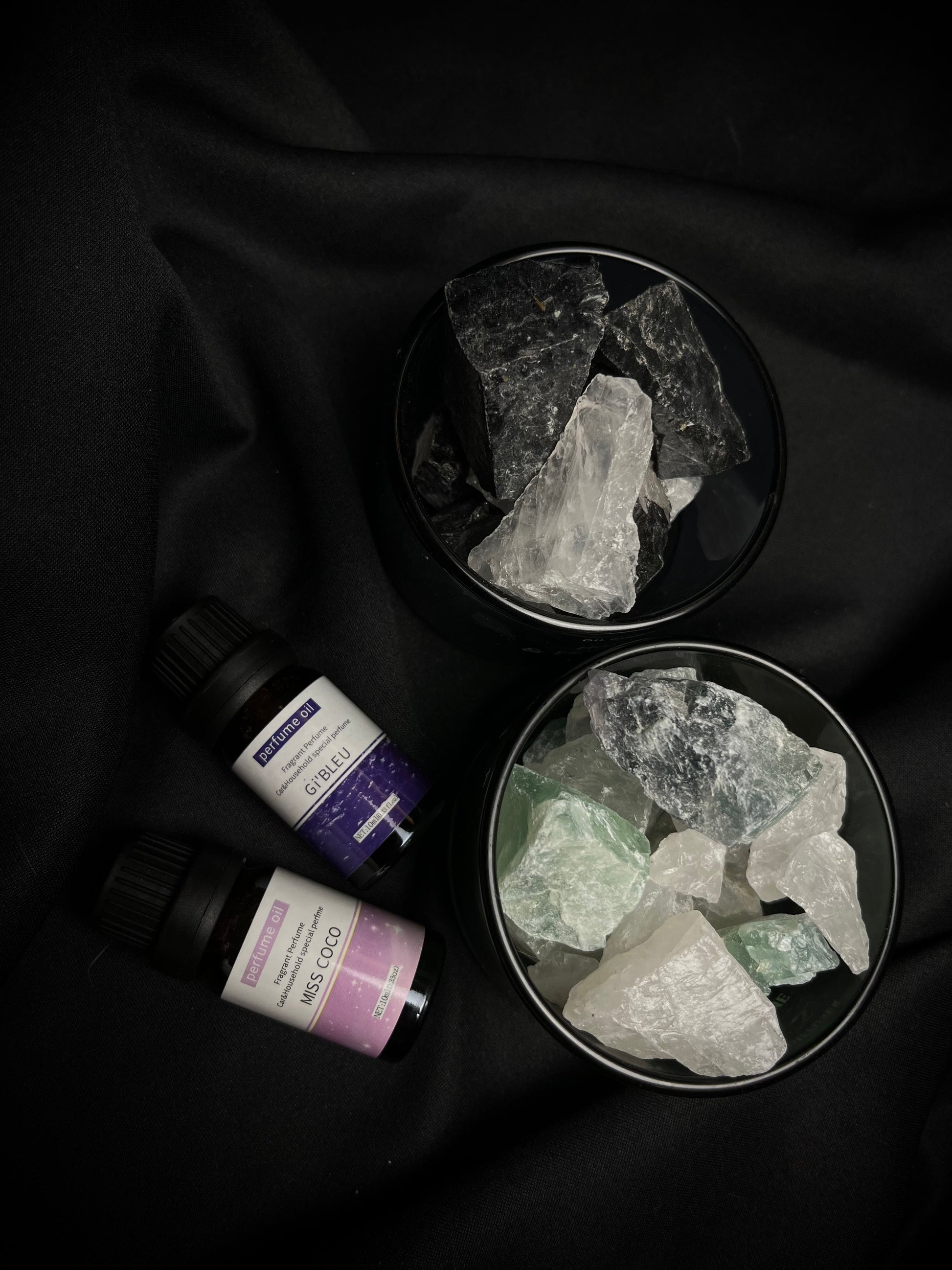 Modernus namų kvapas stikliniame indelyje, kuriame yra aromatiniai kristalai. Pasirinkite kvapą, užpilkite jį ant kristalų, ir jie švelniai skleis aromatą jūsų erdvėje. Kristalai atrodo estetiškai, kvapas išlieka ilgai, o naudojimas – paprastas ir švarus.