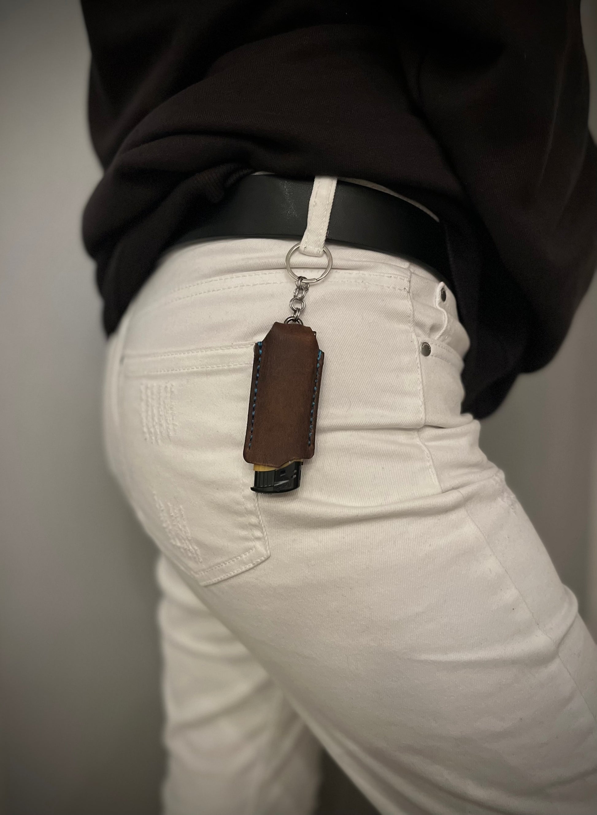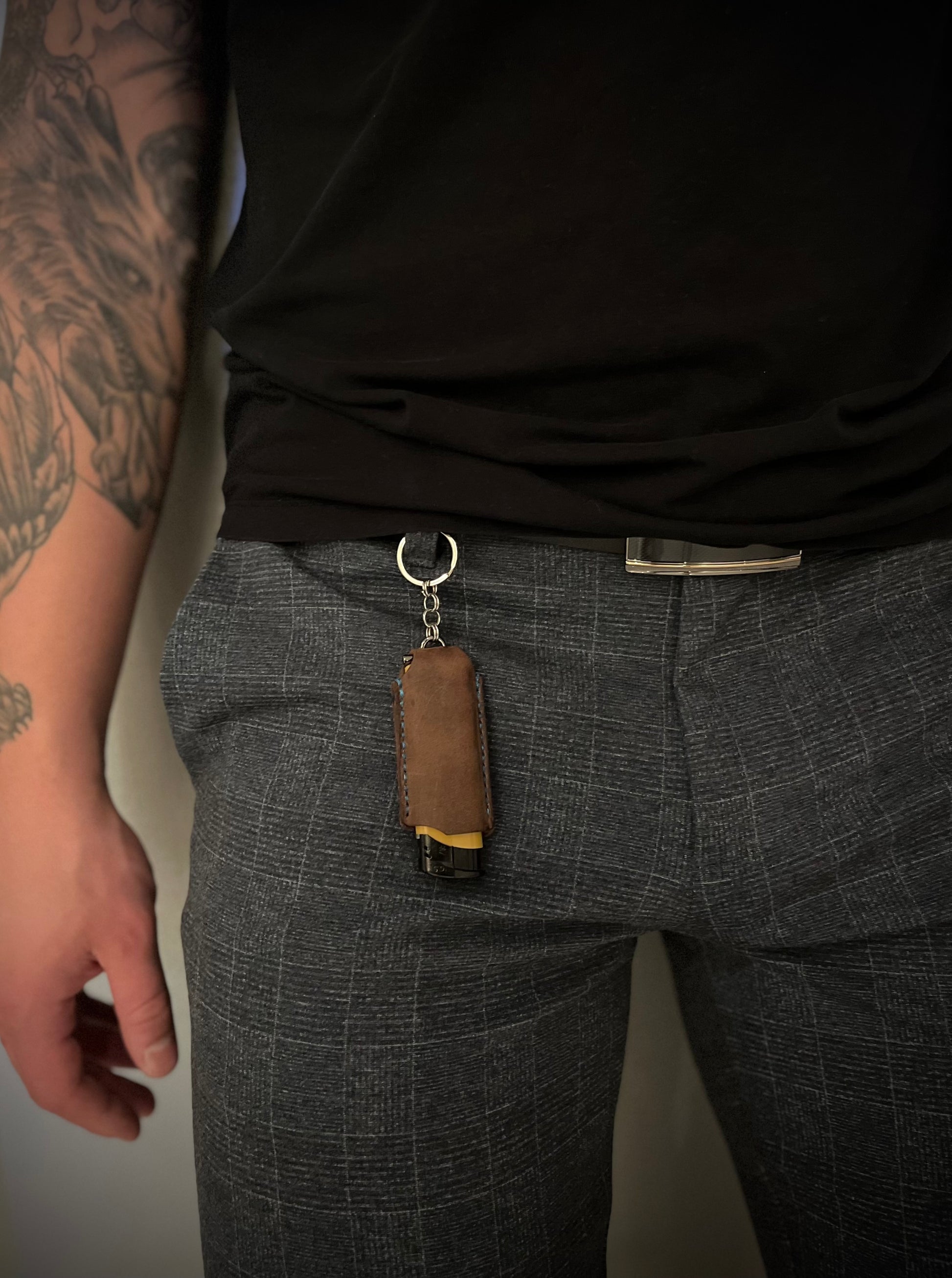 Elegantiški rudi odiniai žiebtuvėlių dėkliukai – klasika ir stilius viename. Rankų darbo iš kokybiškos natūralios odos, šie dėkliukai ne tik apsaugos Jūsų žiebtuvėlį, bet ir suteiks jam išskirtinumo. Visi žiebtuvėlių dėklai, parduodami kartu su patvariais metaliniais pakabukais, kad visada būtų patogu pritvirtinti prie raktų, diržo ar kuprinės.