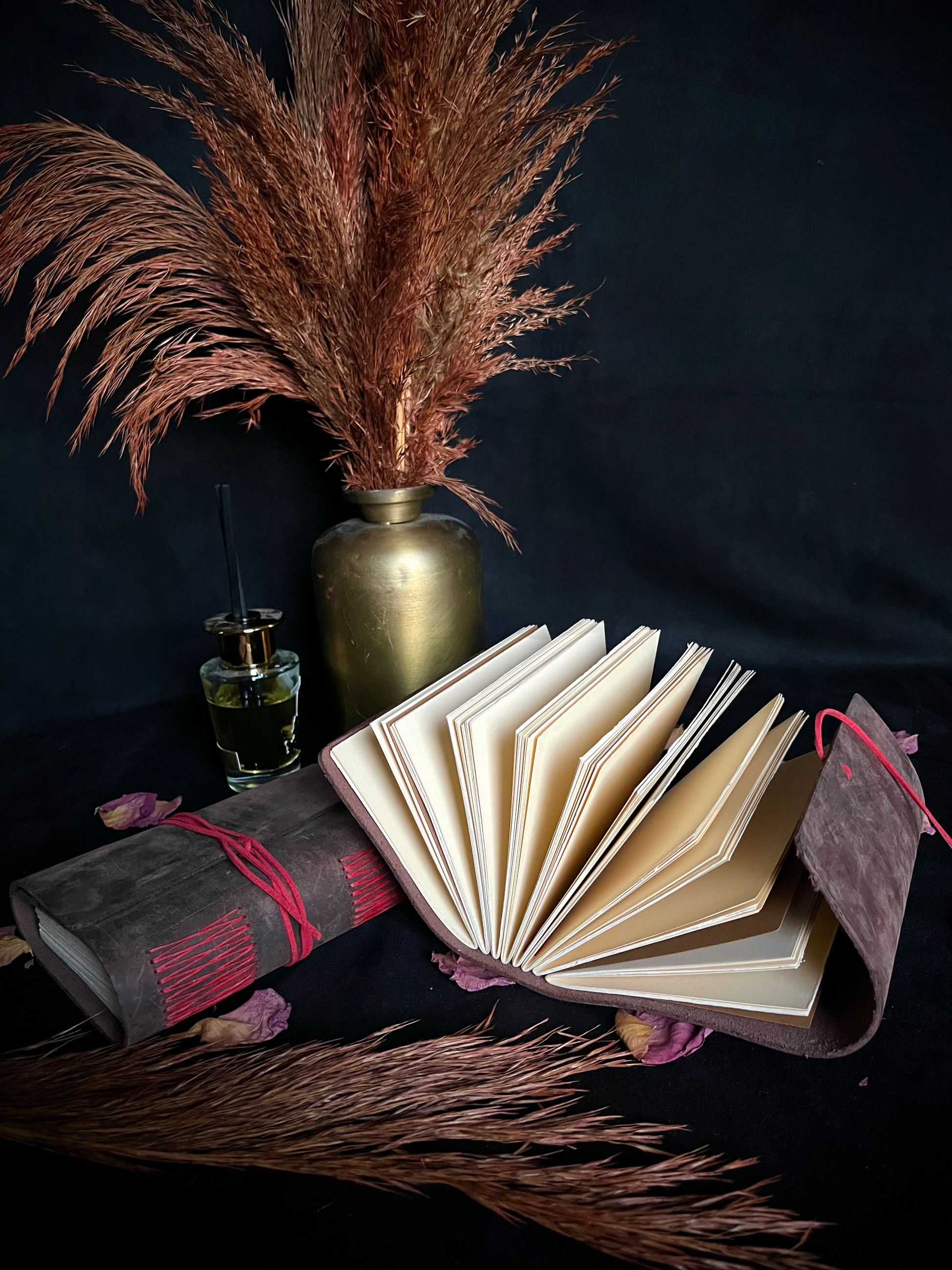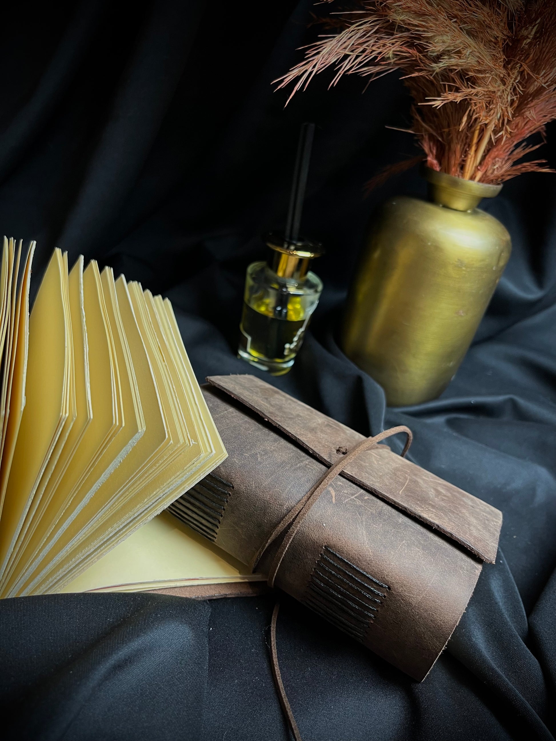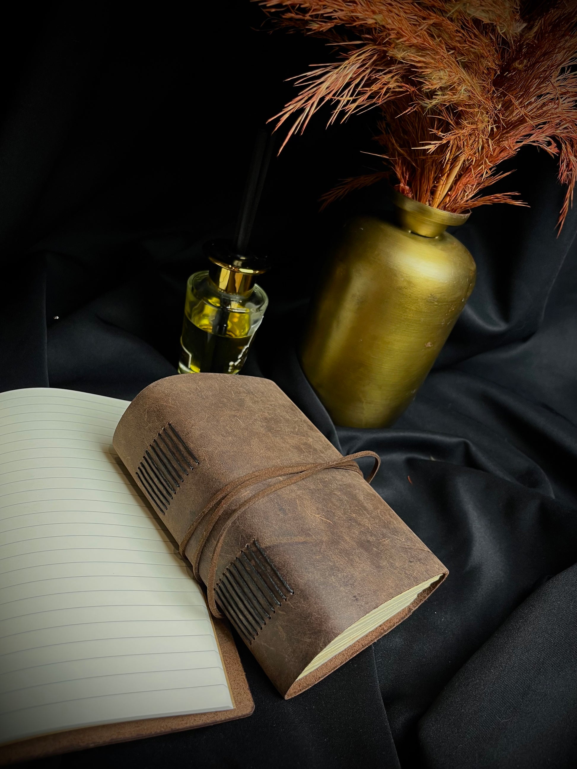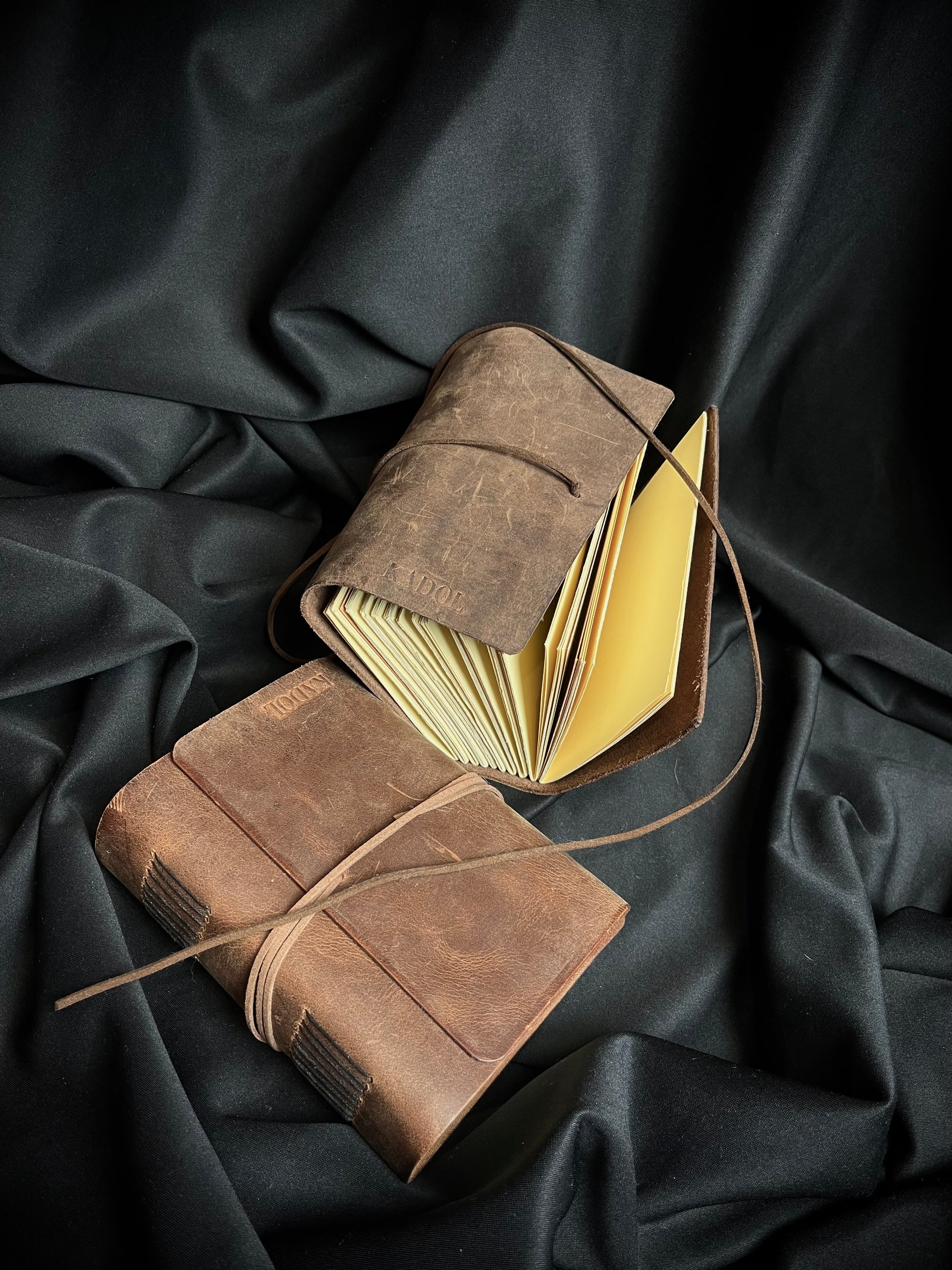 Rūda odinė užrašinė – rankų darbo, iš tvirtos odos. Kompaktiška, praktiška ir stilinga, puikiai tinkanti mintims, planams ar idėjoms užrašyti. Lapai saugiai laikosi, o spalvotas akcentas suteikia individualumo.