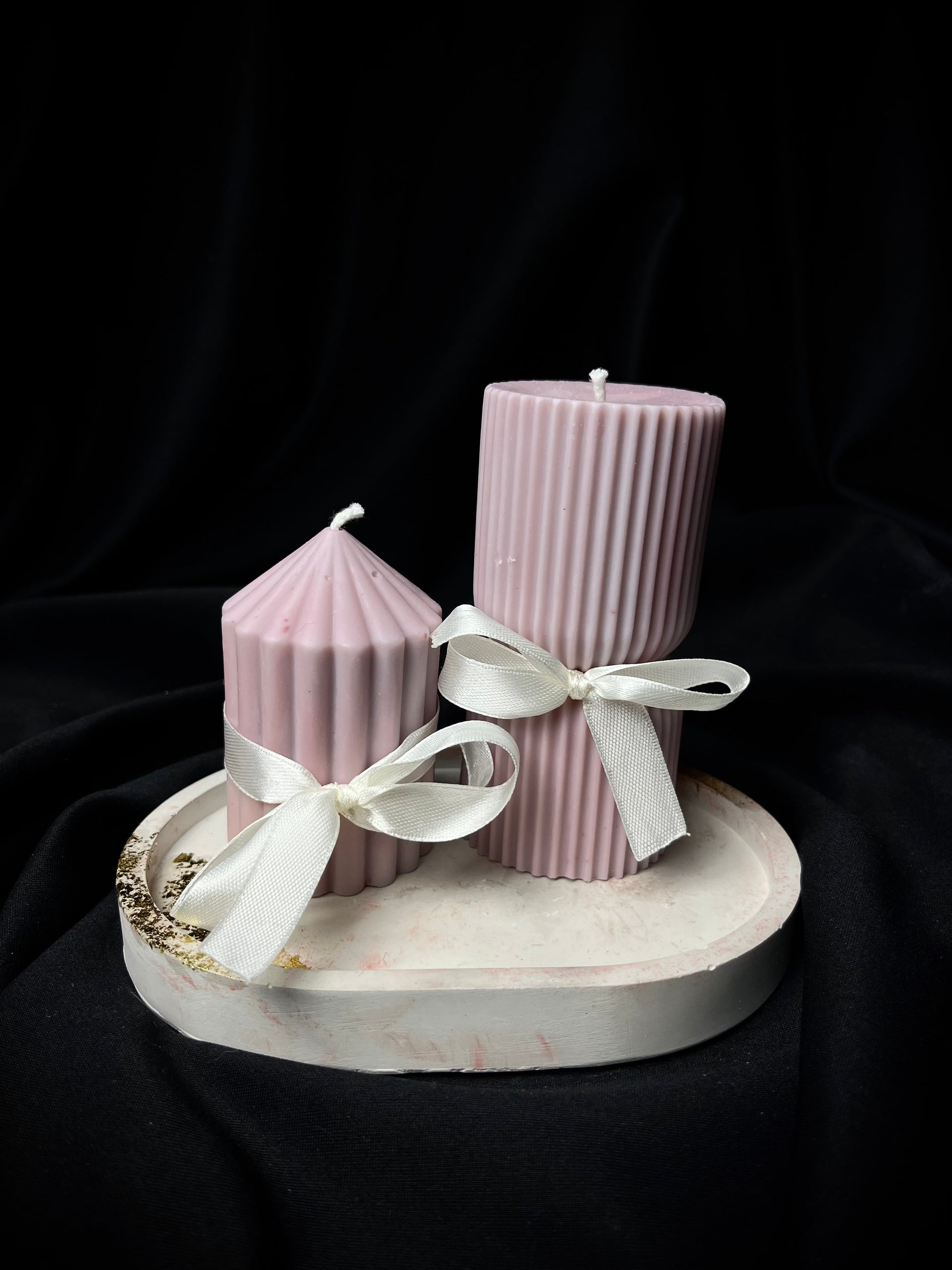 Dvi natūralaus sojų vaško žvakės ir universalaus panaudojimo padėkliukas, tinkantis žvakėms, papuošalams ar kitoms smulkmenoms. ✨